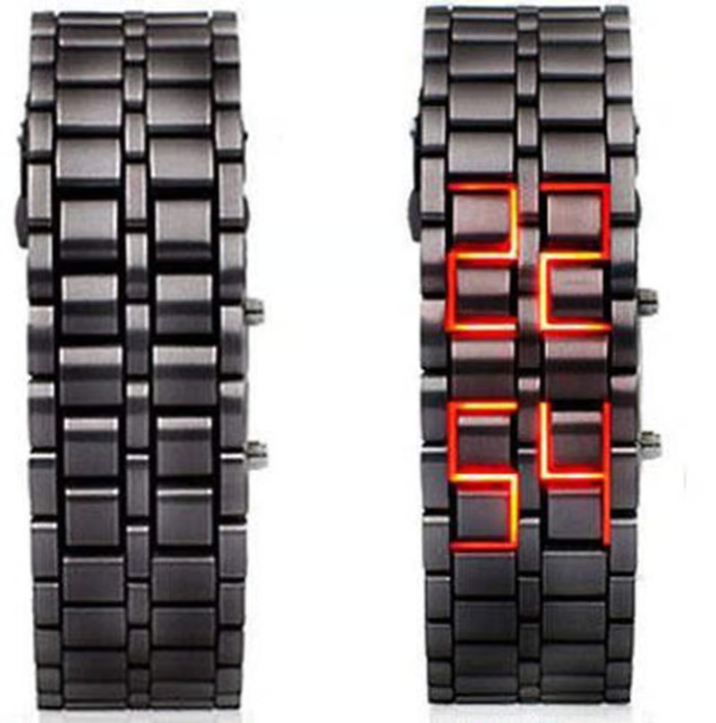 - PRECISE: Electronic movement provides accurate and constant time keeping. LED digital time display. Clear and easy read. Top row LED lights for hour or month, and bottom for minute or day illuminating display.